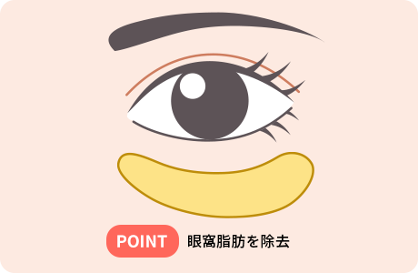 目の下のふくらみ(はみ出している眼窩脂肪)を除去することで、たるみ・クマの症状を改善します。